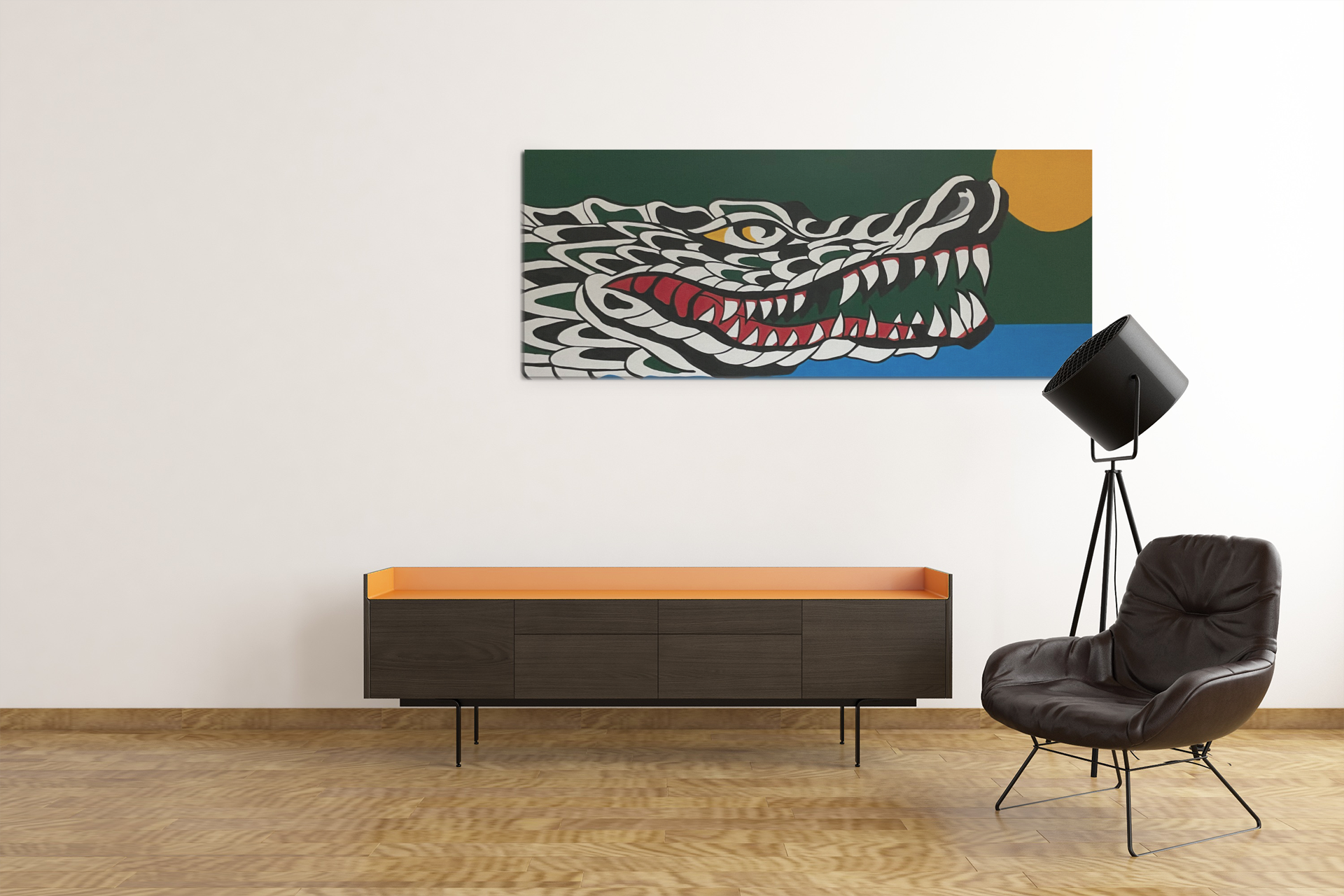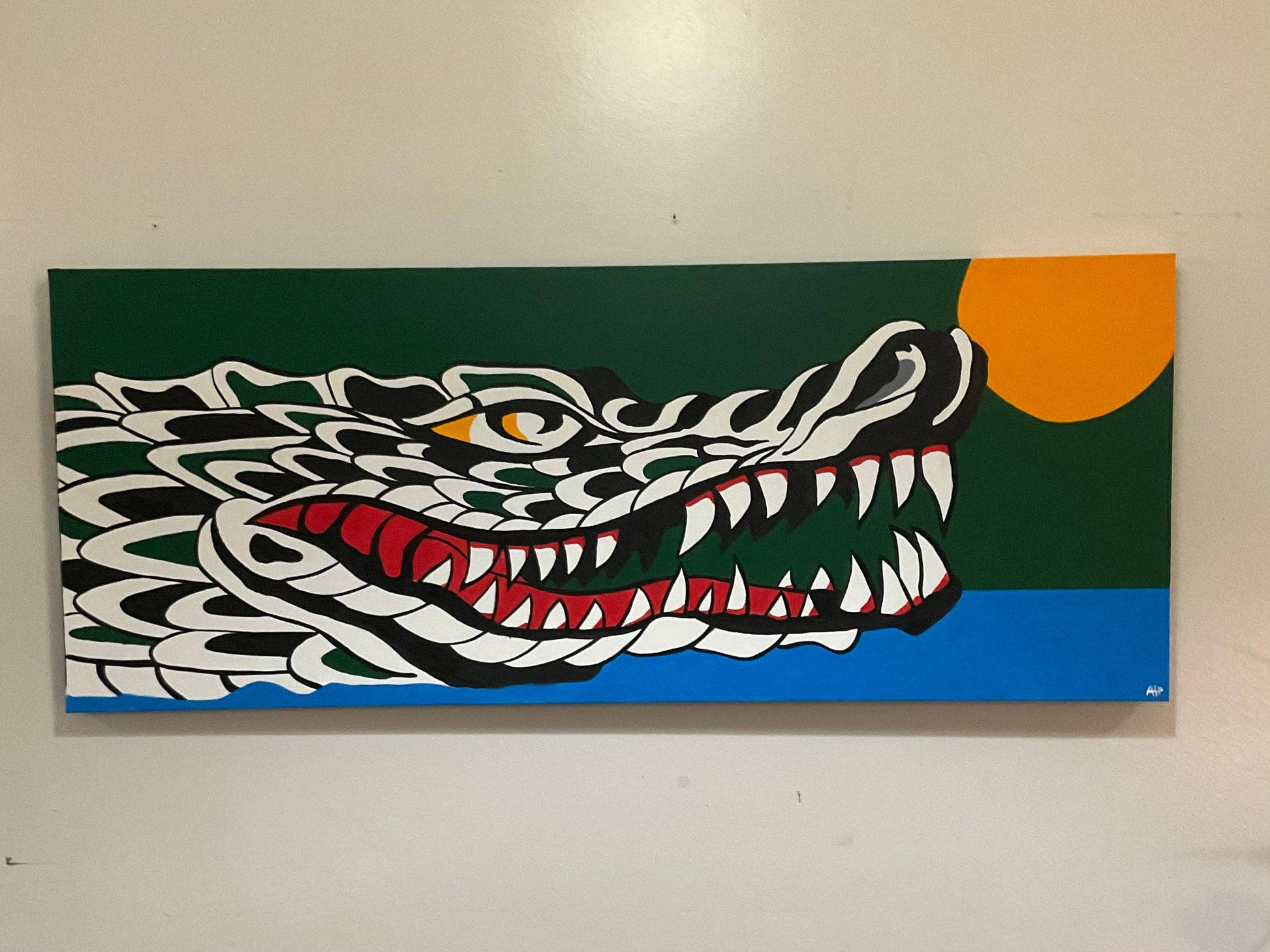 like a crocodile surfacing — fierce and full of survival instinct. This painting reflects